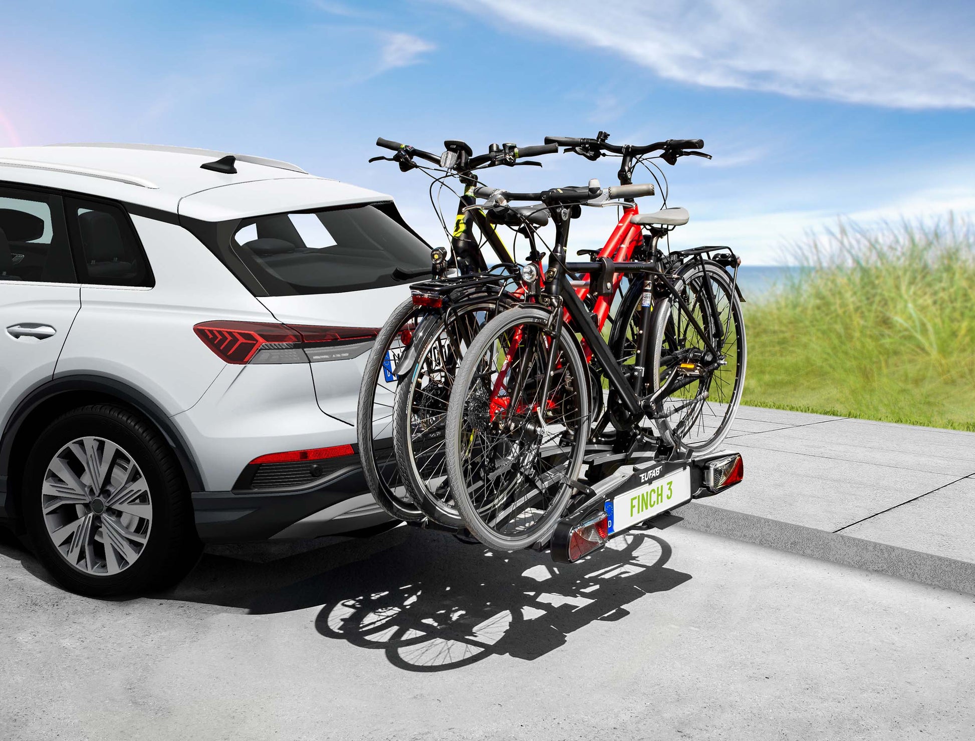 Compatible avec une large variété de vélos, y compris les vélos électriques dans la limite de sa charge utile, le FINCH III accepte également les cadres oversize et les cadres en Y. Les vélos sont maintenus fermement grâce à des fixe-cadres verrouillables et à des sangles de serrage avec fermeture à pince.